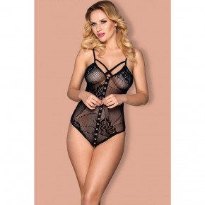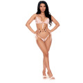 Deze stijlvolle teddy heeft een diep decolleté en een slipje met open rug en een middellijnbandje dat een subtiele knik creëert.