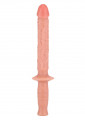 De Fantasy X-tensions Double Trouble Girth Gainer is een sleeve met dildo en ballstrap in huidskleur blank.