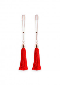 De Tweezers With Feathers zjn tepelklemmen in de kleur goud met rode veren.
