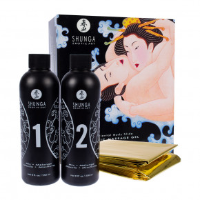 De Shunga Body-To-Body gel is een massage pakket waarmee je een spannende body to body massage kunt geven en nemen. De massage gel die je aanmaakt heeft een heerlijke massage gel heeft de geur exotisch fruit.
