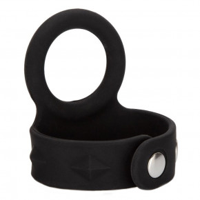De Tri-Snap Scrotum Support Ring Cockring Large is een verstelbare cockring in de kleur zwart.