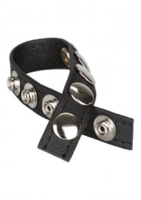 De Tri-Snap Scrotum Support Cockring Medium is een verstelbare cockring in de kleur zwart.