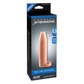 Verander snel en eenvoudig jouw penis in een machine van ongelooflijke spanning met de Fantasy X-tension Real Feel Enhancer. Met de Fantasy X-tension Real Feel Enhancer is je penis 33% dikker en de scrotumband stelt het orgasme uit en intensiveert het. Hij voelt levensecht aan en met deze sleeve zullen eventuele prestatie problemen niet meer opvallen. Geniet weer volop van een heerlijk spel met de Fantasy X-tension Real Feel Enhancer.
